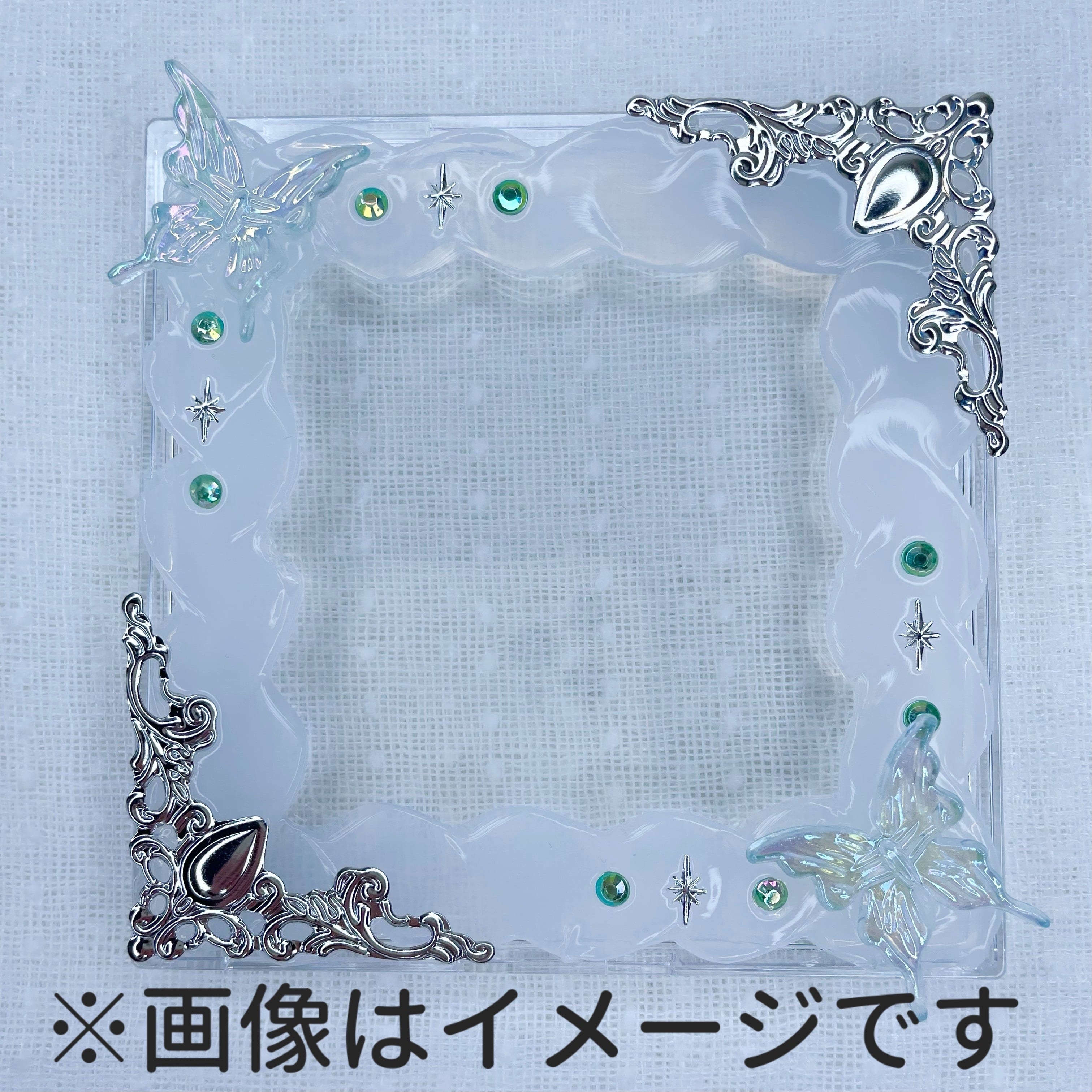 幻想的にきらめくコーラルグリーンバタフライを添えた新作デコケース。
