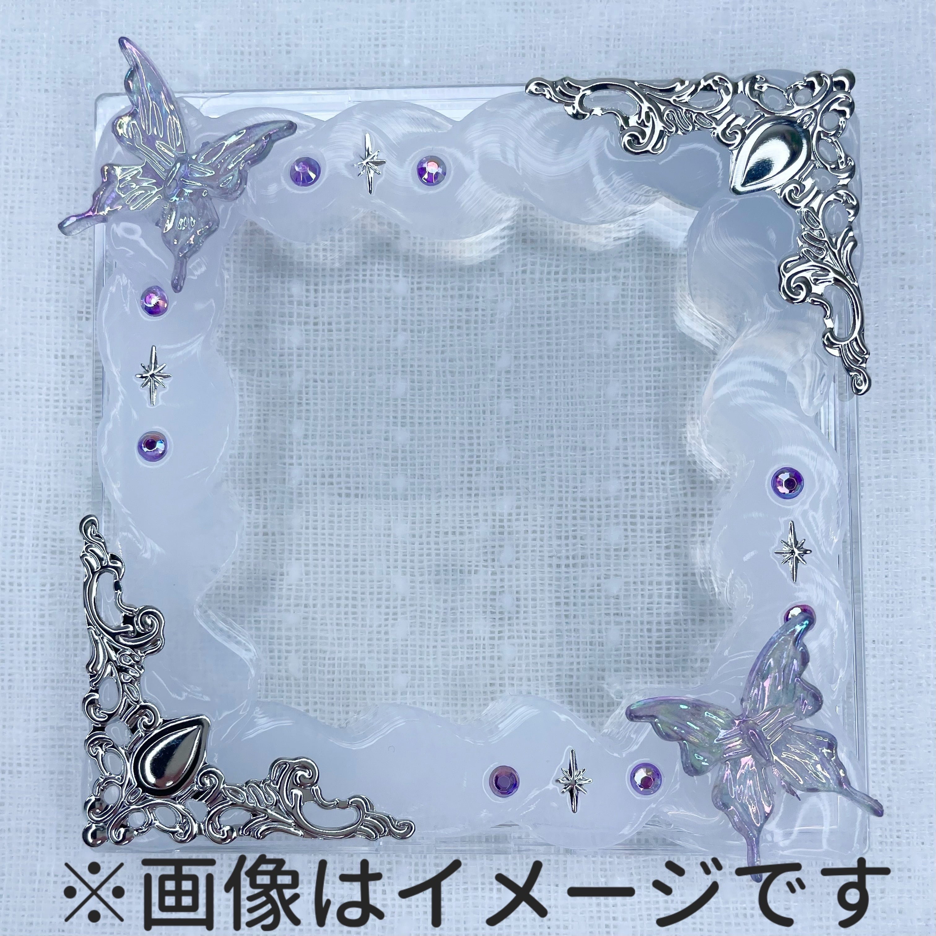 幻想的にきらめく紫バタフライを添えた新作デコケース。