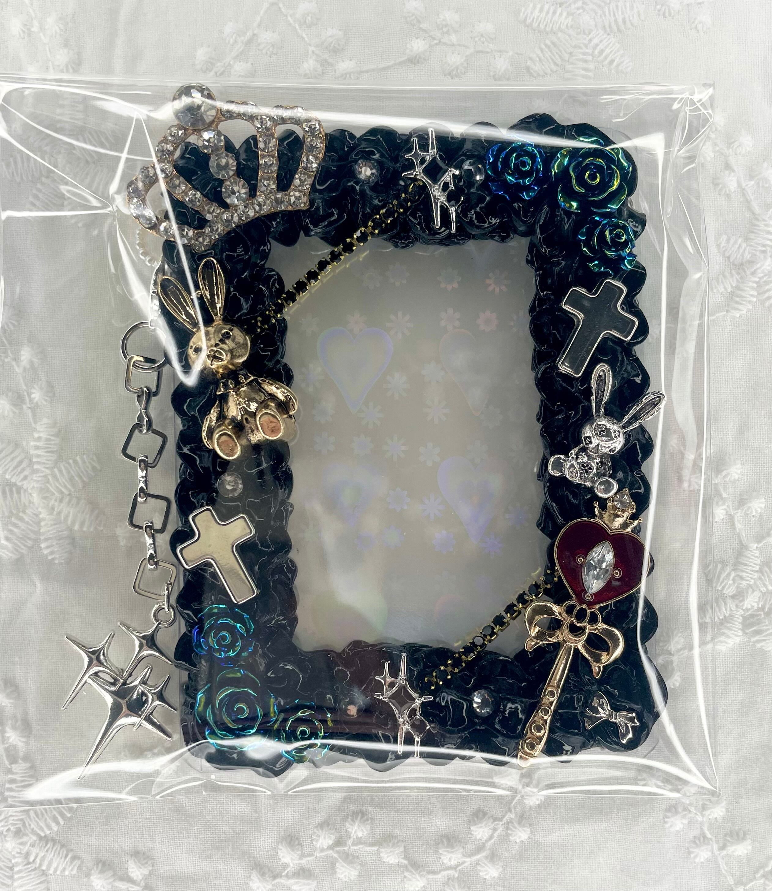 B8サイズの縦型トレカキーホルダーケースデコ(シルバーチャームセット)です。