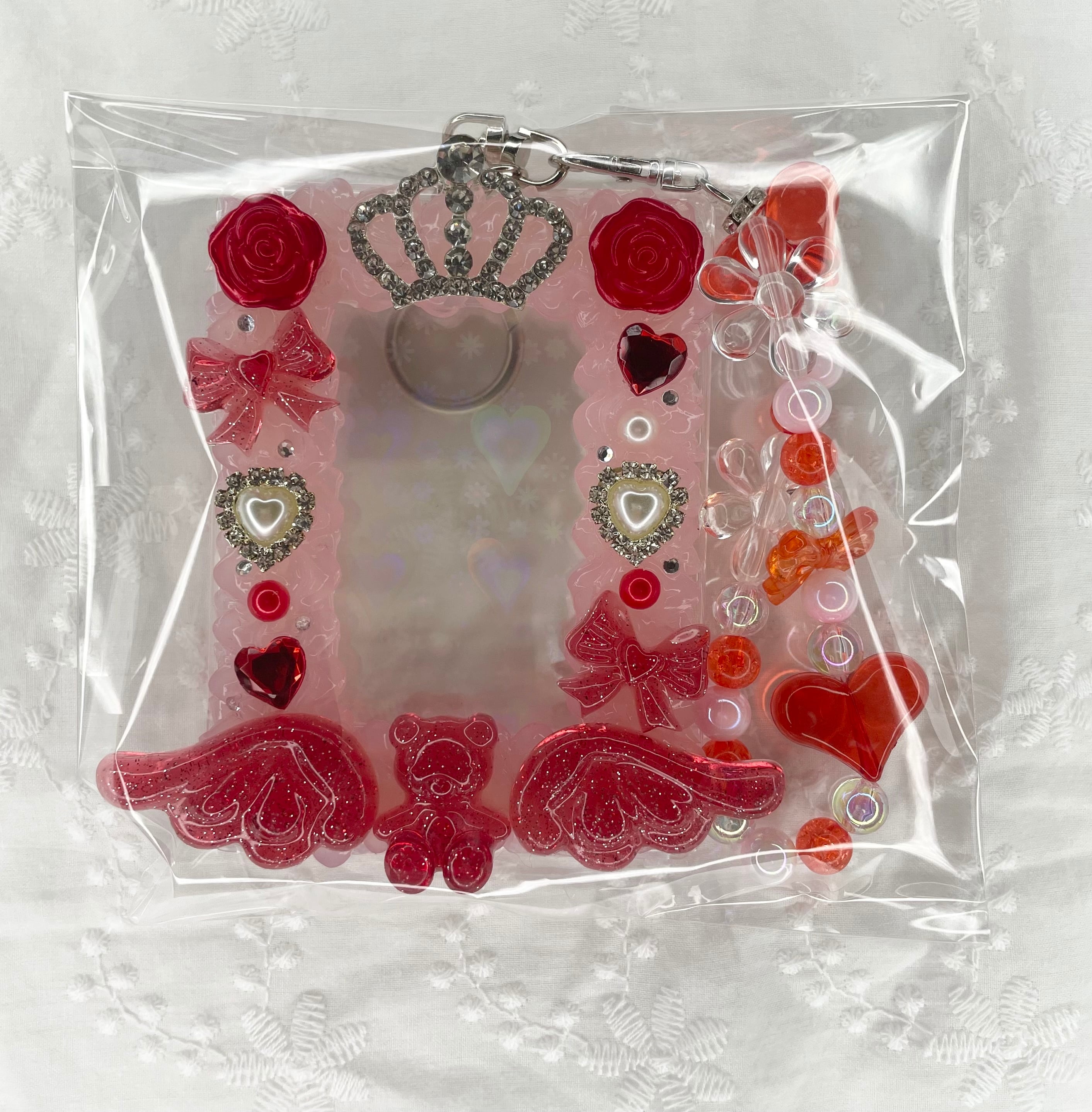ビーズキーホルダー付き天使のくまさんデコケース(B8サイズ,キーホルダータイプ)